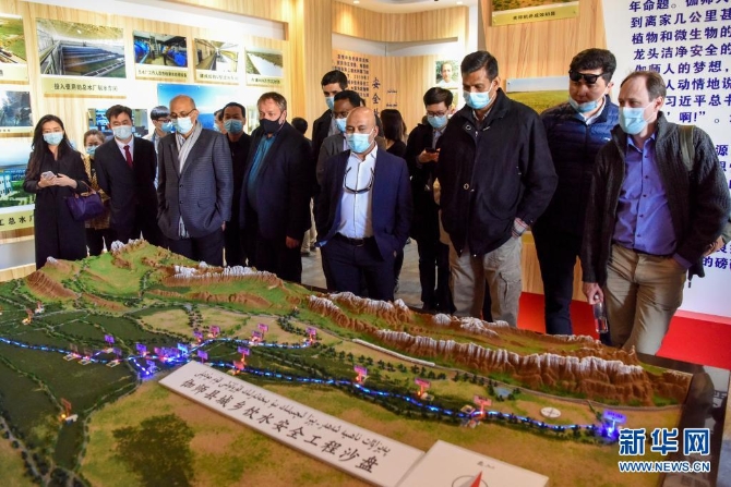 来疆参访代表团在新疆伽师县农村供水总站参观(3月31日摄)。新华社记者 丁磊 摄