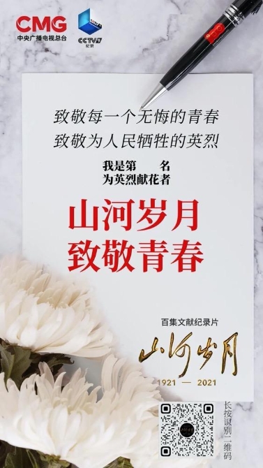 庆祝中国共产党成立100周年,百集文献纪录片《山河岁月》致敬每一个无悔的青春,致敬为人民牺牲的英烈!