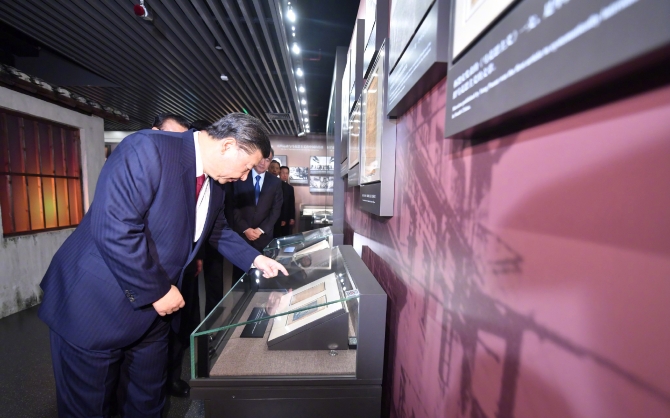 2017年10月31日,习近平等在上海中共一大会址纪念馆参观。