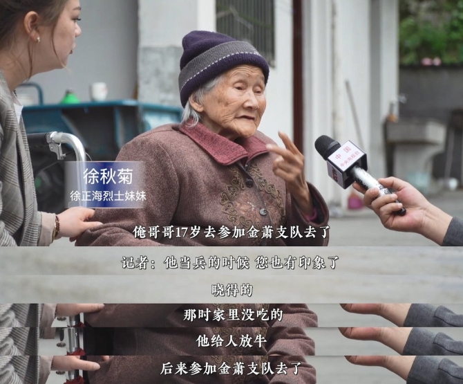 在浙江诸暨市马剑镇马益村中坑,记者见到了徐正海的三妹徐秋菊。老人今年85岁,患有阿尔茨海默病,以前很多事她都不记得了,但提起自己的哥哥,她依然记忆犹新。