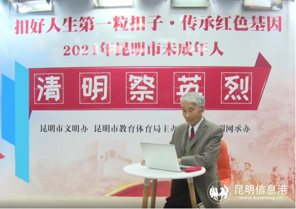 4月2日在昆明信息港开展“2021年昆明市未成年人”清明祭英烈线上主题活动,全市中小学校共60余万师生通过“昆明文明网”观看曾汝弟教授讲述英雄聂耳的故事,听新时代好少年贾宸同学讲述他外曾祖父的革命故事,并进行网上祭奠,在网上献花、寄语留言,表达对先烈的感恩和敬仰。
