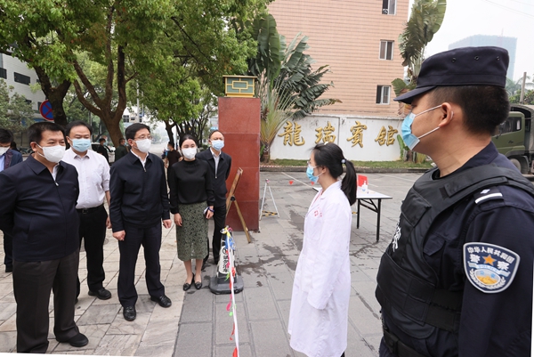 4月5日,省委副书记、省长王予波和国务院联防联控机制综合组云南工作组组长、国家卫生健康委副主任雷海潮继续在瑞丽市督导疫情处置工作时强调,要深入学习贯彻习近平总书记关于疫情防控工作的重要指示精神,弘扬伟大抗疫精神,坚定信心、抖擞精神,科学规范、平稳有序推进疫情处置工作,坚决打赢疫情防控阻击战。