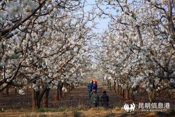 一场春雨过后,呈贡区吴家营街道万溪冲社区的宝珠梨古树梨园,吸引不少游客前来游玩拍照。