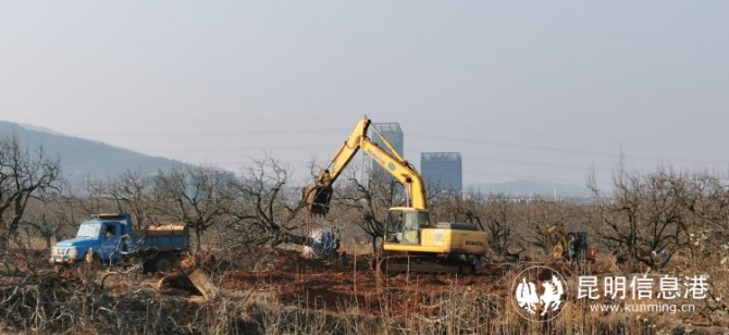 近几年,呈贡新区的腾飞已经是一触即发,一个现代化新城正在崛起。随着昆明呈贡区信息产业园区、福宜高速路、黄马高速路等项目的推进建设,万溪冲社区对种植于项目用地里的宝珠梨进行了保护性移栽。据了解,截止目前大约移栽了近17000株,主要移植到万溪公路、黄马高速公路两侧,以及信息产业园区周边绿化用地的空地上,部分还移栽到了高校里。