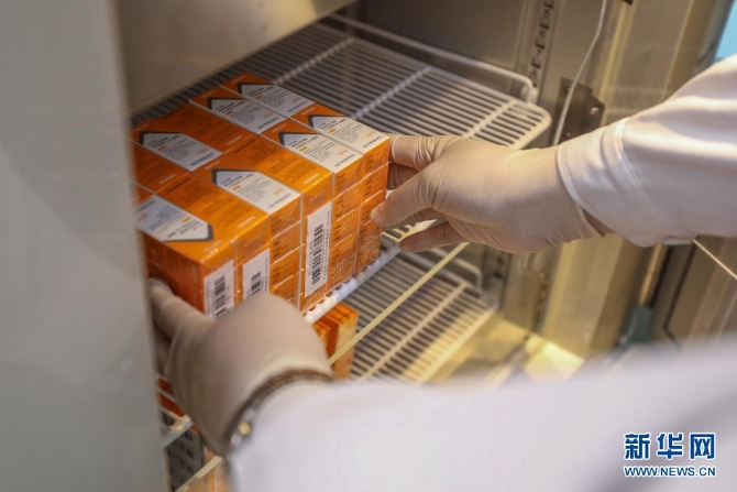 4月7日,医护人员从移动疫苗接种车上的冷藏箱内取出新冠疫苗。新华社记者 张玉薇 摄