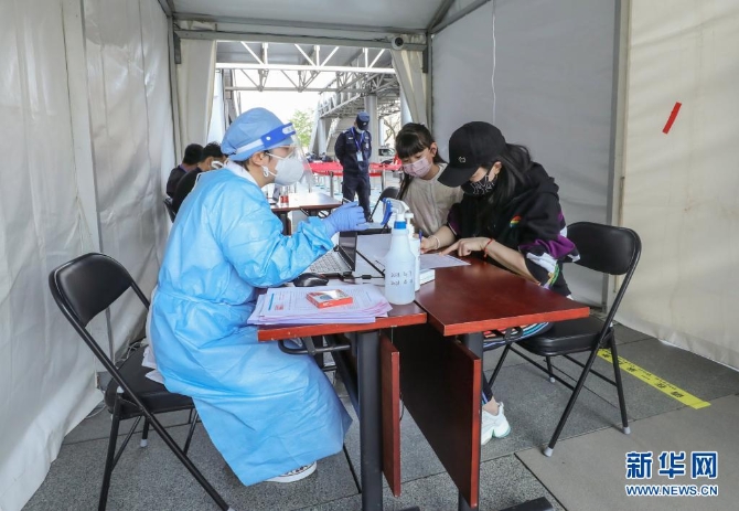 4月7日,市民在接种点登记信息。新华社记者 张玉薇 摄