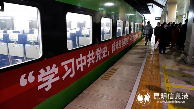 一大早,参加活动的云南交通系统的干部职工就来到站台等候上车。记者在现场看到,铁路部门通过在主题列车车体、车窗处张贴“百年党史忆党恩 缅怀先烈强信念”“奋斗百年路 启航新征程”等标语,营造出学习党史的浓厚氛围。