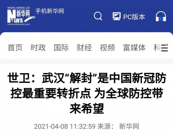 《世界卫生组织:武汉“解封”为全球防控带来希望》