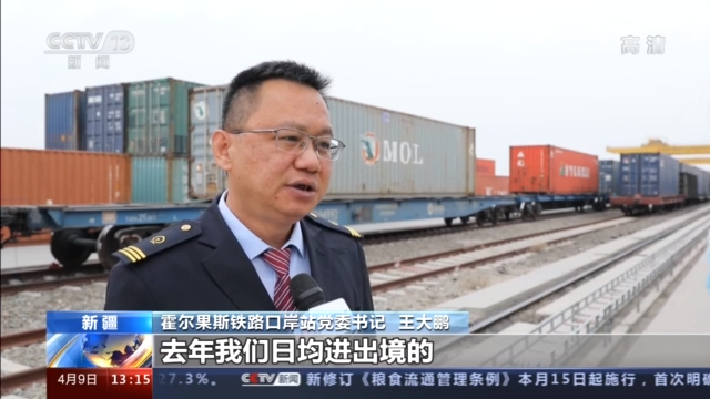 新疆霍尔果斯铁路口岸站党委书记 王大鹏:去年我们日均进出境的中欧(中亚)班列基本上在15列左右。今年我们日均基本上达到了20列,最高一天我们达到了23列。(总台记者 王跃军 崔宁)