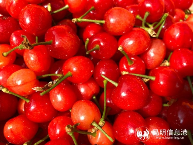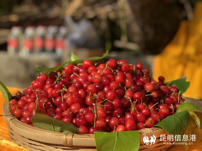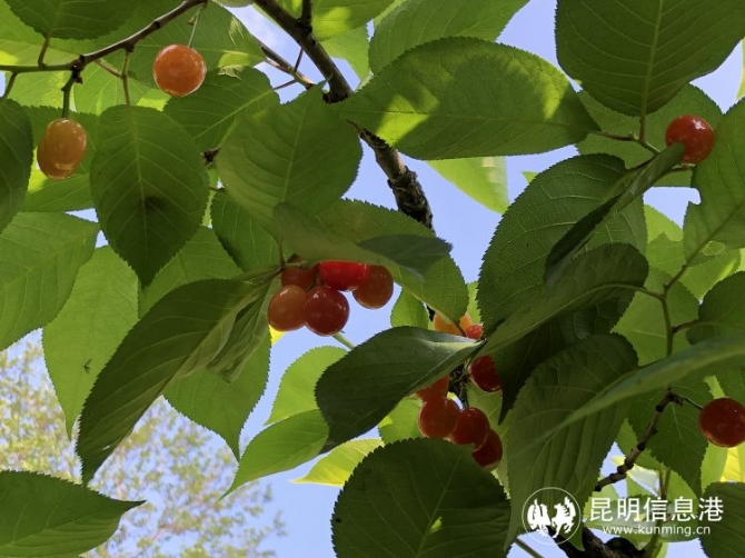 昆明信息港讯 记者李莹 “斜日庭前风袅袅,碧油千片漏红珠。”春光明媚,正是吃樱桃的好时节。昆明宜良县北古城镇米户村近万亩樱桃已经鲜红挂果等待游客品尝。据悉,在米户不仅可以品尝到全市少见的“红玛瑙”樱桃,且价格实惠:入园游玩免入园费,鲜果售价每公斤20元左右。