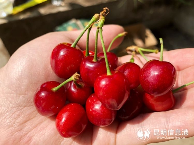 “这种顶部有一个小尖尖,外形像一个桃心的樱桃就是‘红玛瑙’,云南省只有我们米户村大面积种植,约有2000亩。”米户村驻村第一书记白文昌介绍。“红玛瑙”不仅在外形上与其他樱桃有区别,而且个大、核小,味浓,在专家的培育下甜度更高。“大部分樱桃是酸甜的,而‘红玛瑙’成熟的鲜果在口感上可以达到纯甜”。白文昌说,“之前有游客尝过之后说我们的米户樱桃‘甜过初恋’。”