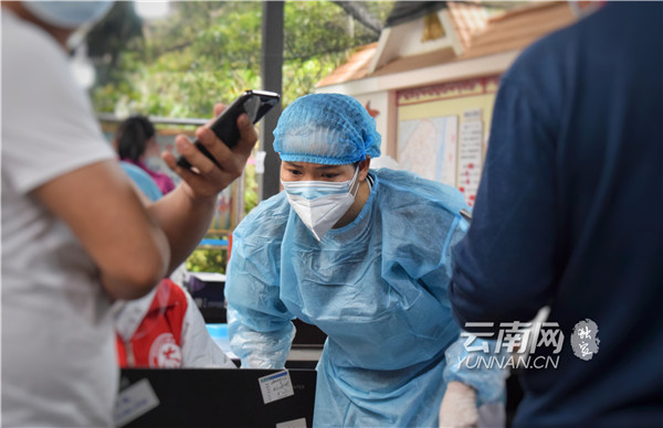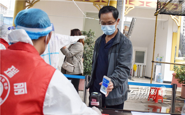 ●排队等候须保持1米以上距离,不相互交谈。(云南网 记者夏方海)