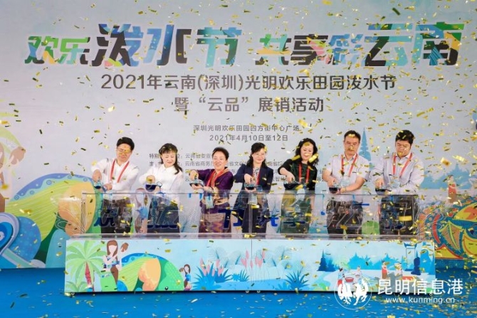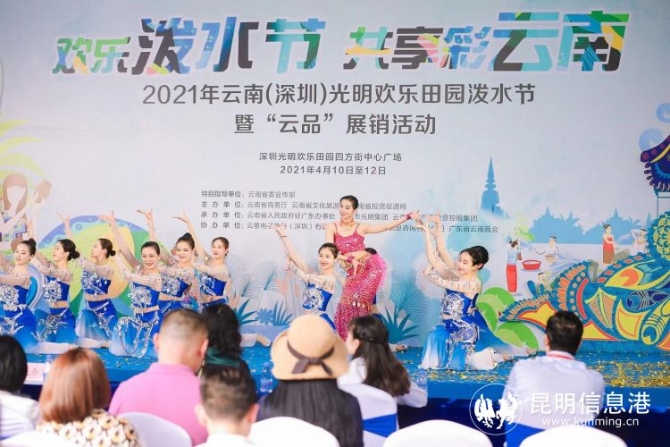 昆明信息港讯 4月10日,由云南省委宣传部指导,省文化和旅游厅、省商务厅、省投资促进局等部门联合主办,省人民政府驻广东办事处和深圳市光明集团、云南文投集团共同承办的2021年云南(深圳)光明欢乐田园泼水节暨“云品”展销活动在深圳光明欢乐田园四方街中心广场举办。