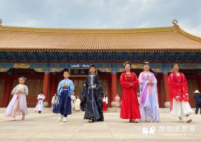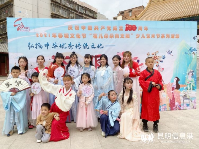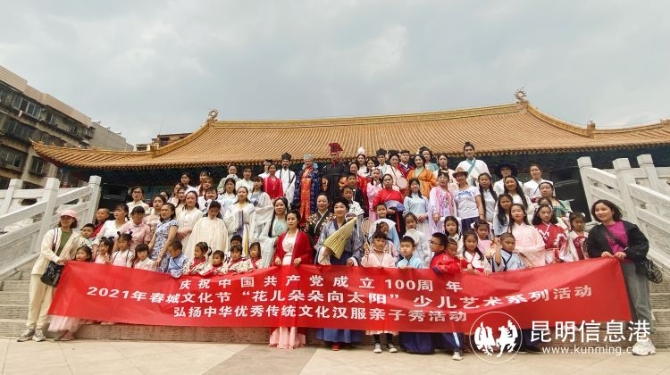 昆明信息港讯 记者张琪蕊 4月11日,昆明市文化馆在昆明文庙举办昆明市2021年春城文化节“花儿朵朵向太阳”少儿艺术节汉服亲子秀活动,共同弘扬中华优秀传统文化,传承华夏文明。
