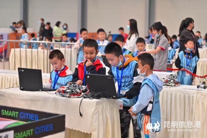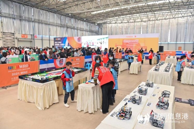 昆明信息港讯 记者龙泉积 4月11日,WRO世界青少年奥林匹克竞赛、MWRC玛塔世界机器人大赛2021春季交流活动(云南站)在昆明国际会展中心(3号馆)举行。现场,竞赛分为初小组、小学组和初中组,共有约300名少年儿童参加,遴选出的优胜者,将参加相应的全国竞赛。