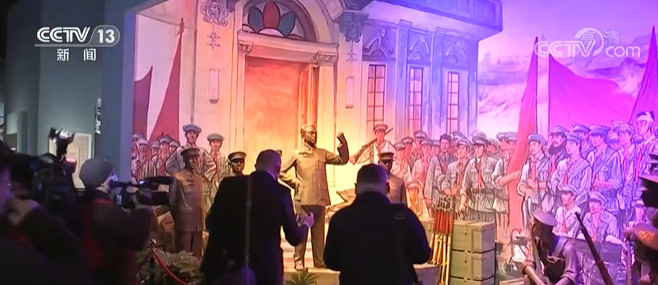 从南昌起义的声光电雕塑到秋收起义的油画,从工农红军军旗到为根据地百姓分土地时留下的宝贵档案,各国记者用镜头、纸笔纪录着他们亲眼看到的中国故事。