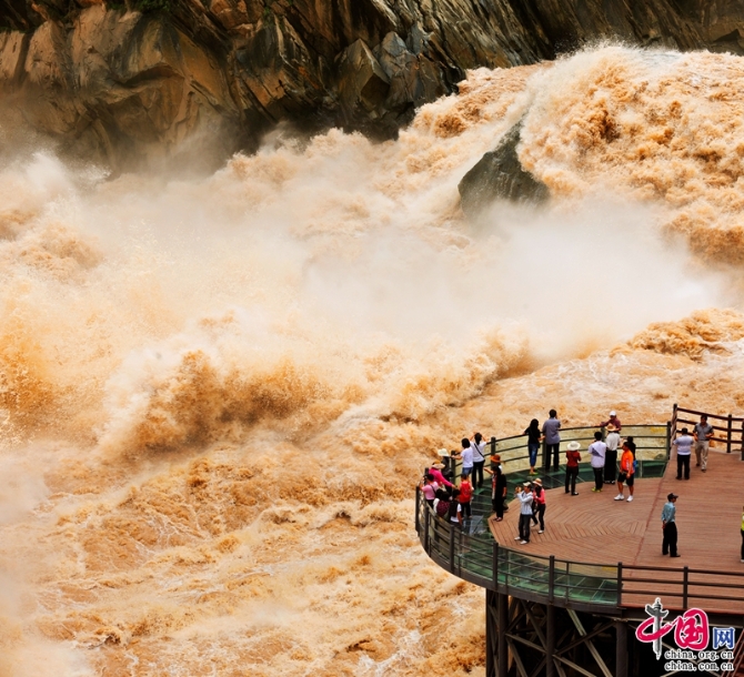 虎跳峡全长23公里,20公里内落差达213米,两岸的玉龙雪山和哈巴雪山海拔分别为5596米和5396米,而峡谷的下峡口和上峡口海拔分别为1600米和1800米,海拔高差3596米以上,与西藏雅鲁藏布江大峡谷、美国科罗拉多大峡谷一样,属世界级的峡谷。虎跳峡因猛虎跃江心石过江的传说而得名,它横穿于哈巴雪山与玉龙雪山之间,共有险滩18处,江面最窄处仅为20余米。峡谷以其山高谷深、滩多水急、雄奇险峻的风光吸引了大量的中外游客。
