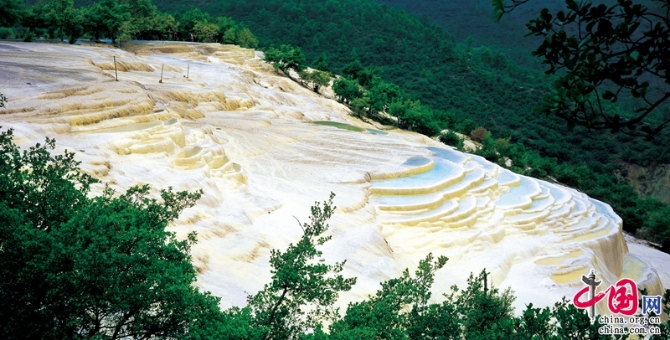 白水台位于哈巴雪山山麓,被称为“仙人遗田”是我国最大的华泉台地,由于水中富含碳酸氢钙,长久以来的溶解沉淀形成了白水台这个自然奇观,整个形状好似层层梯田,形成无数块层层叠叠蓄满水的玉埂银丘,白水台不仅风景秀丽,还是纳西族东巴文化的发祥地,每年农历二月八,纳西人民在这里举办盛大的“朝白水”活动。