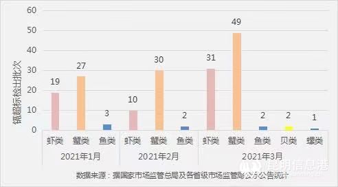 据相关资料显示,水产品出现镉超标,是生长环境内镉元素富集所致,其中甲壳类对镉的富集能力高于鱼类。这也是皮皮虾梭子蟹等以海洋捕捞为主的甲壳类产品,在抽检中频频中招,而鱼类甚少的原因。