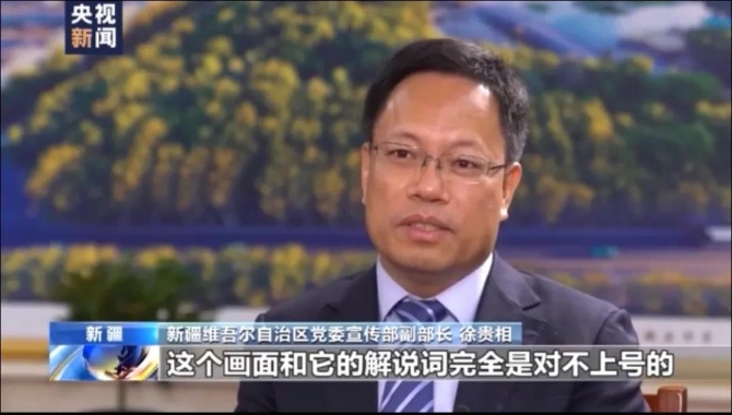 新疆维吾尔自治区党委宣传部副部长徐贵相日前说,新疆敞开双臂,欢迎外国记者进行实地采访,他本人就曾接待过BBC的记者团队并接受专访,但最后播出的内容却让他大跌眼镜:BBC的视频画面和他的介绍完全是矛盾的,而且是在欺骗观众认知。