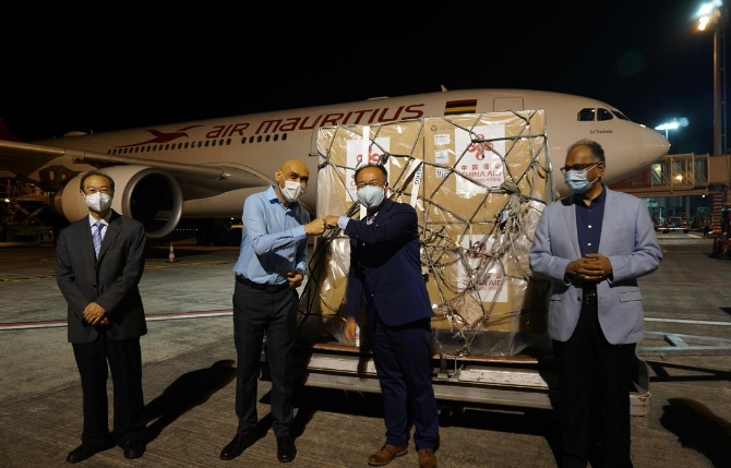 中国新冠疫苗运抵毛里求斯 中毛抗疫合作进入新阶段
