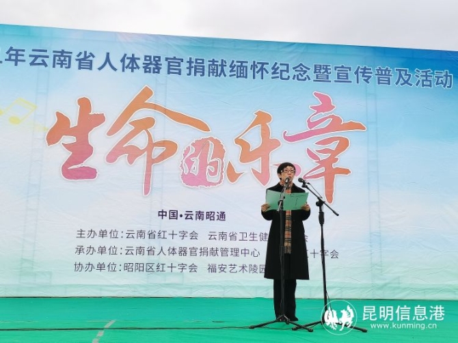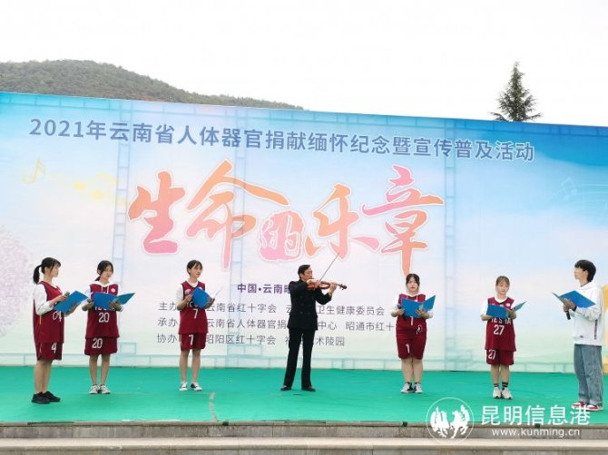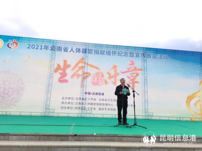 昆明信息港讯 记者李红鸾 通讯员徐平 4月14日上午,由云南省红十字会、云南省卫省健康委员会主办,云南省人体器官捐献管理中心、昭通市红十字会承办,昭阳区红十字会、大龙洞福安艺术陵园协办的“博爱云岭·生命乐章——云南省红十字会2021年人体器官捐献缅怀纪念活动”在昭通市人体器官捐献·生命礼赞园举行。
