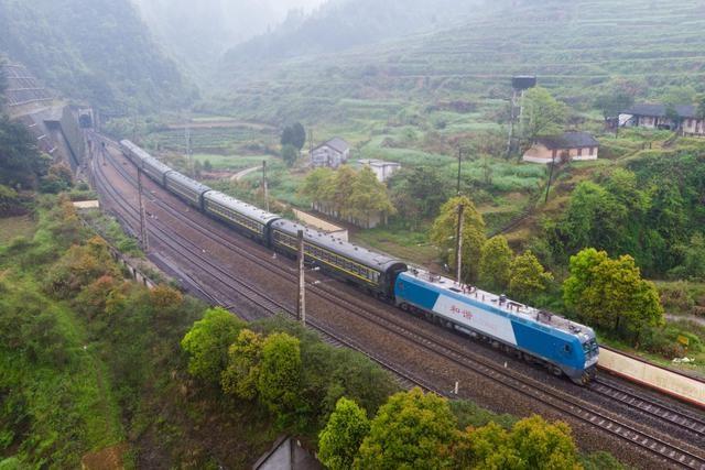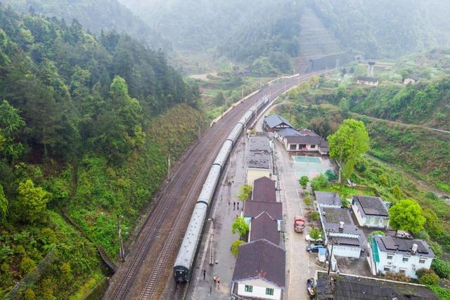 ↑4月11日,一列列车经过湖南省湘西土家族苗族自治州古丈县默戎镇境内的万岩站。