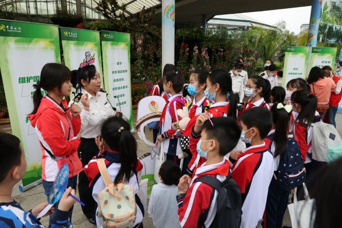 ▲2021年4月10日,广州海关联合华南植物园开展“维护国门生物安全,共建美丽生态家园”全民国家安全教育主题活动,向参与活动的小学生普及国门生物安全知识。
