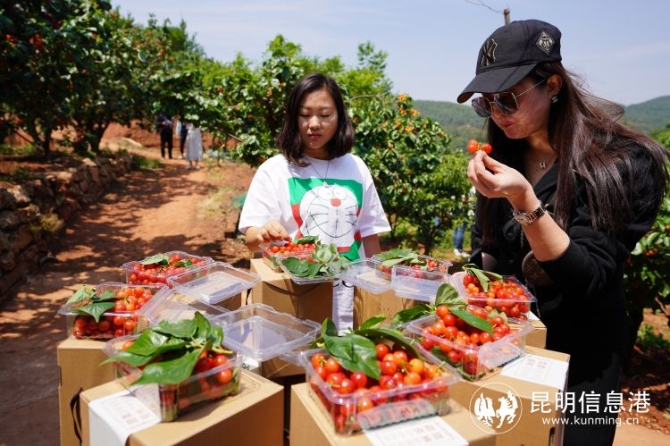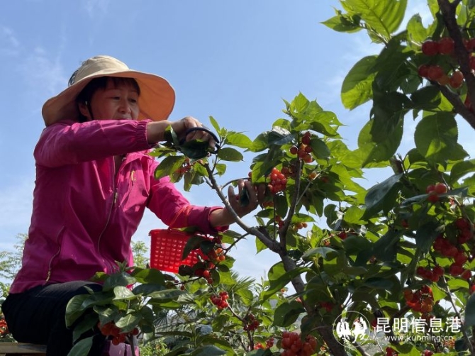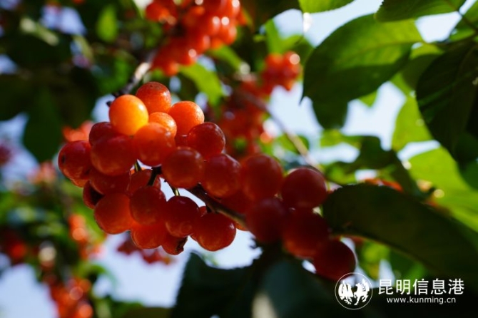 昆明信息港讯 记者龙泉积 “林间尝尽樱桃果,下山路上似神仙。”人间最美四月天,怎能少得了美美地饱尝一顿樱桃。4月15日,昆明阳宗海风景名胜区举行樱桃上市新闻发布会,位于七甸街道内的马郎、松茂、野竹、水塘、头甸等10个社区共11000余亩樱桃喜获丰收,采摘期可持续到5月中旬,入园采摘30元/公斤,入园费10-15元/人,购买5公斤可免入园费。