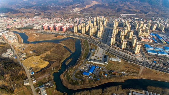 这是位于云南省昭通市境内的跨县易地搬迁安置区靖安新区(2月3日摄,无人机照片)。新华社记者 江文耀 摄