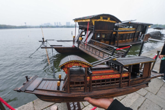 就是靠着这股认真劲,韩鸣华制作的红船船模最终被南湖革命纪念馆收藏。“船身、头龙门、利市头、稍龙门等比例都恰到好处。舱外桅杆、缆绳桩、船橹,舱内椅凳、案几等各个精致玲珑。”纪念馆相关负责人对韩鸣华的船模给出了这样的评价。