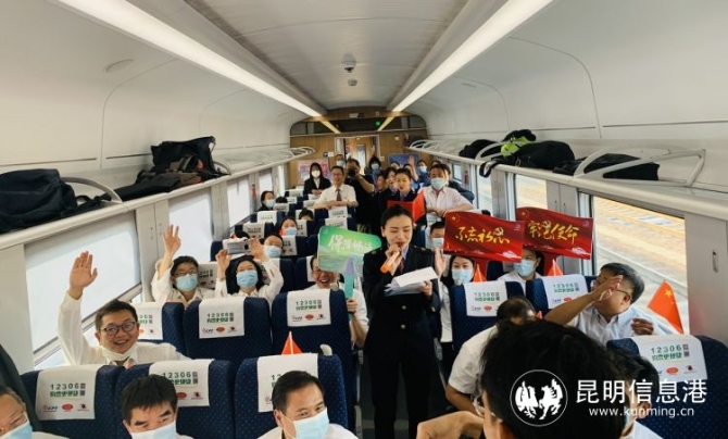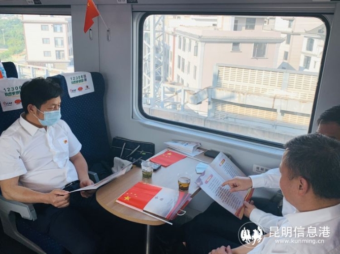 当天8点,列车准时从昆明站出发。在列车上,列车乘务员与云南公路、铁路党员开展了党史知识竞赛、讲述党史故事、齐唱革命歌曲等活动,进一步激发旅客学习党史的热情,营造浓郁氛围。