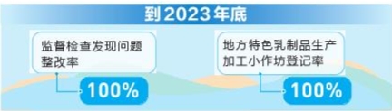 为促进乳制品产业健康发展、保障人民群众消费安全,日前,省市场监管局紧紧围绕打造世界一流“绿色食品牌”战略目标,出台《云南省乳制品质量安全三年提升行动方案》,明确到2023年底,全省乳制品质量安全监管能力大幅提升,监督检查发现问题整改率达到100%,乳制品监督抽检合格率保持在99%以上,地方特色乳制品生产加工小作坊登记率达到100%。