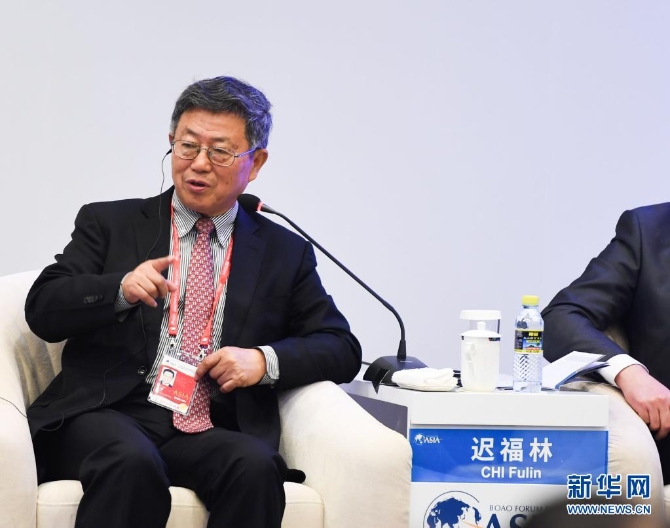 中国(海南)改革发展研究院院长迟福林在博鳌亚洲论坛2018年年会“21世纪海上丝绸之路岛屿经济”分论坛上发言(2018年4月9日摄)。新华社记者 杨冠宇 摄