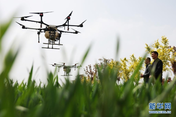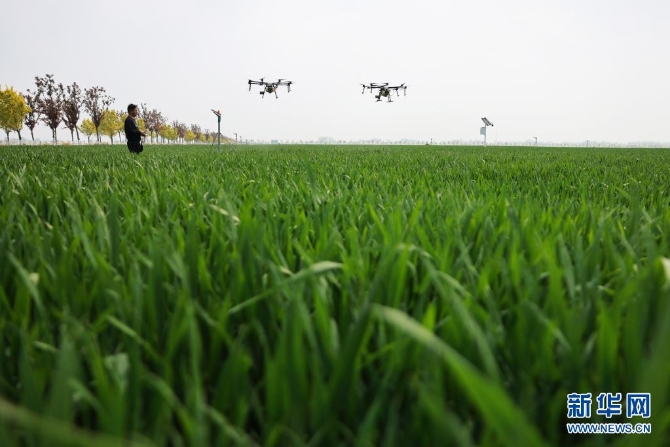 新华社郑州4月20日电 记者李若琳 李鹏 春耕时节,气温回升,绿意盎然的麦田里并不平静,肉眼难见的病虫害可能随时威胁正在抽穗扬花的麦苗。但是,河南商水县高标准农田示范区一望无际的麦田里却鲜见农民的身影。