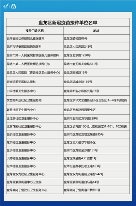 记者从盘龙区卫生健康局获悉,4月21日盘龙区新到61690支新冠疫苗,除了固定新冠疫苗接种以外,盘龙区还新增了4个大型临时接种点,便于市民就近接种。