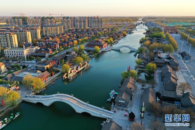 河北省唐山市丰南区唐津运河风光(2021年4月13日摄,无人机照片)。近年来,河北省唐山市丰南区大力推进“全域治水 清水润城”工程,统筹城乡水环境综合治理,将治水与民生改善、产业发展、城市景观相结合。新华社记者牟宇/摄