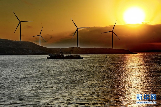 这是在福建南日岛海域拍摄的风力发电场(2019年2月22日摄)。新华社记者张国俊/摄