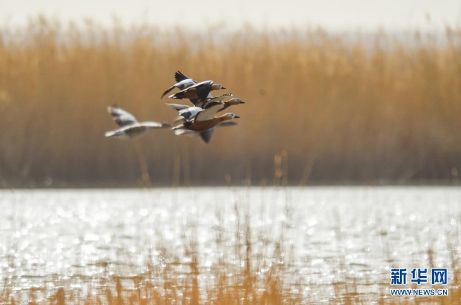 这是在位于内蒙古阿拉善盟额济纳旗的居延海湿地拍摄的候鸟(2021年4月13日摄)。新华社记者连振/摄