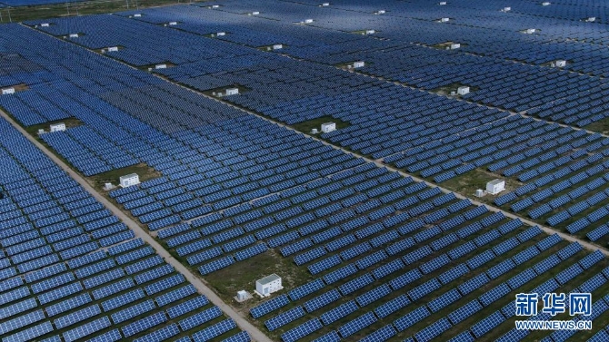 青海省海南藏族自治州共和县塔拉滩光伏电站(2020年8月17日摄,无人机照片)。新华社记者张龙/摄