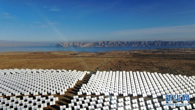 这是位于青海省海南藏族自治州共和县光伏产业园内的一处塔式光热发电项目(2020年12月15日摄,无人机照片)。新华社记者 张宏祥/摄