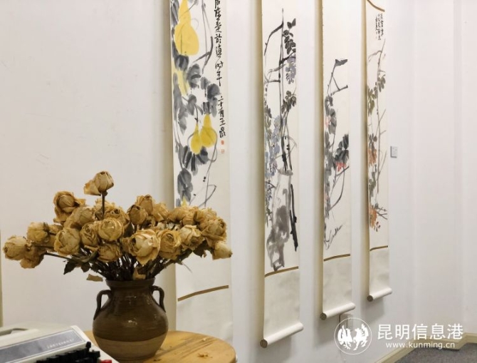 昆明信息港讯 记者昝娟娟 4月24日下午,“庆祝中国共产党成立100周年系列展:与花同乐——赵寒、陈解军花鸟画作品展”在文林美术馆开幕。此次展览展出两位画家的七十多幅写意花鸟画作品,展览自4月24日起展至5月9日,免费面向公众开放。