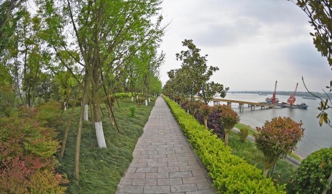在宜昌兴发集团新材料产业园,沿江绿化带郁郁葱葱,成为众多游人打卡地;