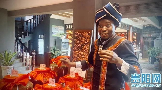 来自加纳的Robert Nani走进一家酒馆,感受当地的酒文化,他兴奋的说:“一尝就知道是好酒,特别的辣,味道非常的好。”此外,他还表示:“这里建筑非常的具有特色,古色古香的,气候也非常适合居住,高山流水就是对青岩古镇最好的形容。”