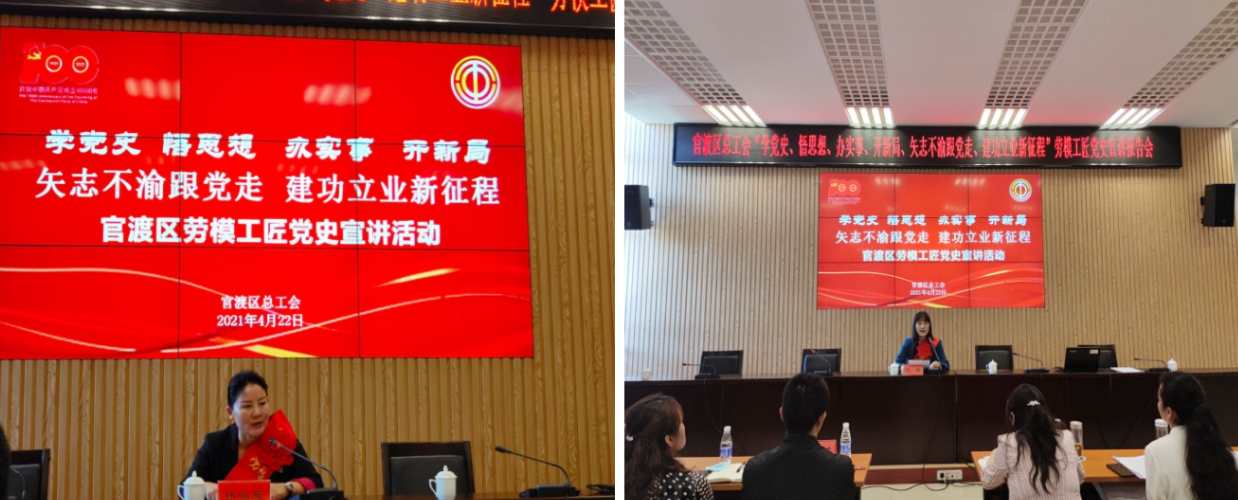 官渡区共有劳模129位,其中全国劳模3位,省部级劳模29位,市级劳模97位。为切实开展好党史学习教育,让党史宣讲深入基层,官渡区总工会组建了一支由劳模、工匠、标兵、最美职工组成的党史宣讲队。在五一国际劳动节即将到来之际,举行劳模工匠党史宣讲活动,邀请劳模工匠们走到台前,讲述响应党的号召,用辛勤劳动、诚实劳动、创造性劳动为经济社会发展作贡献的真实故事,唱响劳动最光荣、劳动最崇高、劳动最伟大、劳动最美丽的时代主旋律。