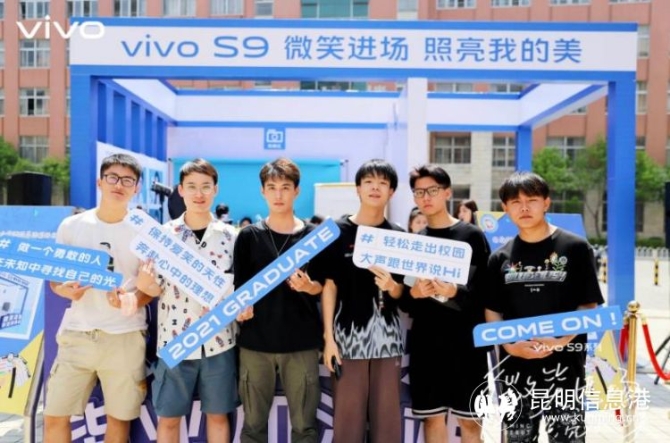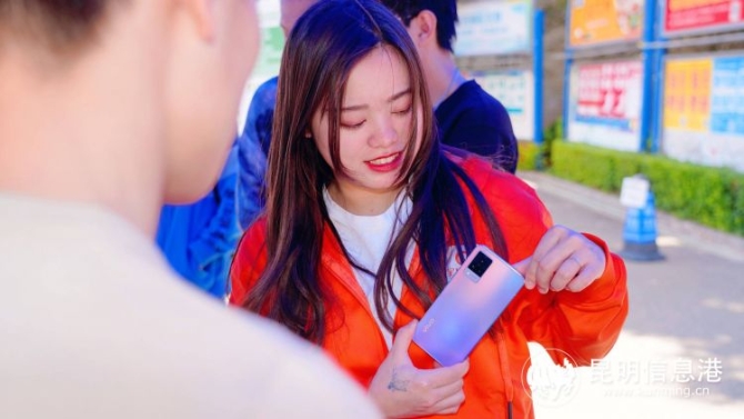 在昆明站,vivo云南联合云南大学、云南财经大学、西南林业大学、云南师范大学商学院四大学校开展了“微笑进场,毕业加油站”活动。