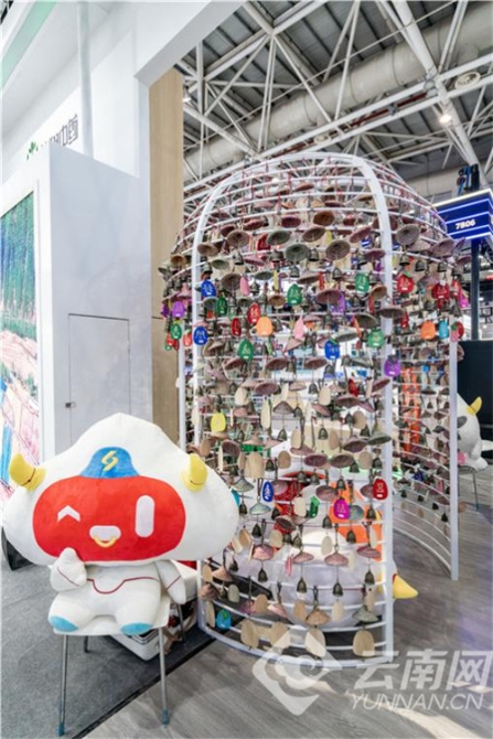 在云南展台一角,摆放着丽江旅游特色的小风铃 曾钴畅 摄