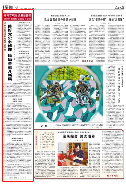 4月28日《人民日报》要闻版刊发文章,点赞云南省扎实开展党史学习教育,一起来看: