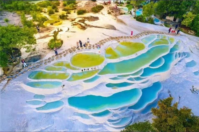 看由碳酸钙溶解于泉水中而形成的自然奇观