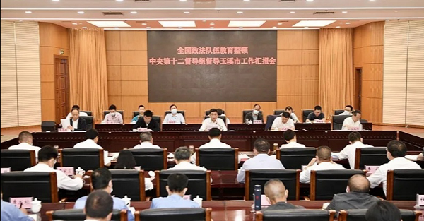 全国第一批政法队伍教育整顿中央第十二督导组副组长敬大力率督导组下沉玉溪督导。云南政法队伍教育整顿驻点指导组第4组组长赵祖莹,副组长普赵辉、赵彪,参加汇报会,赵祖莹陪同督导。